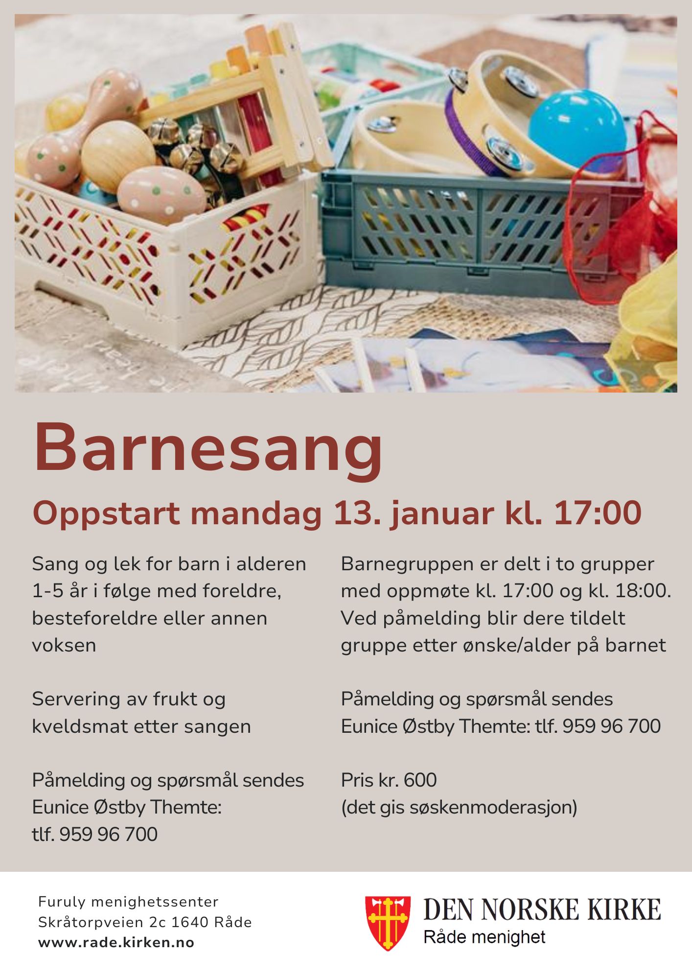 Sang, lek og kveldsmat på Furuly menighetssenter. Et sosialt møtepunkt for småbarnsfamlier.
