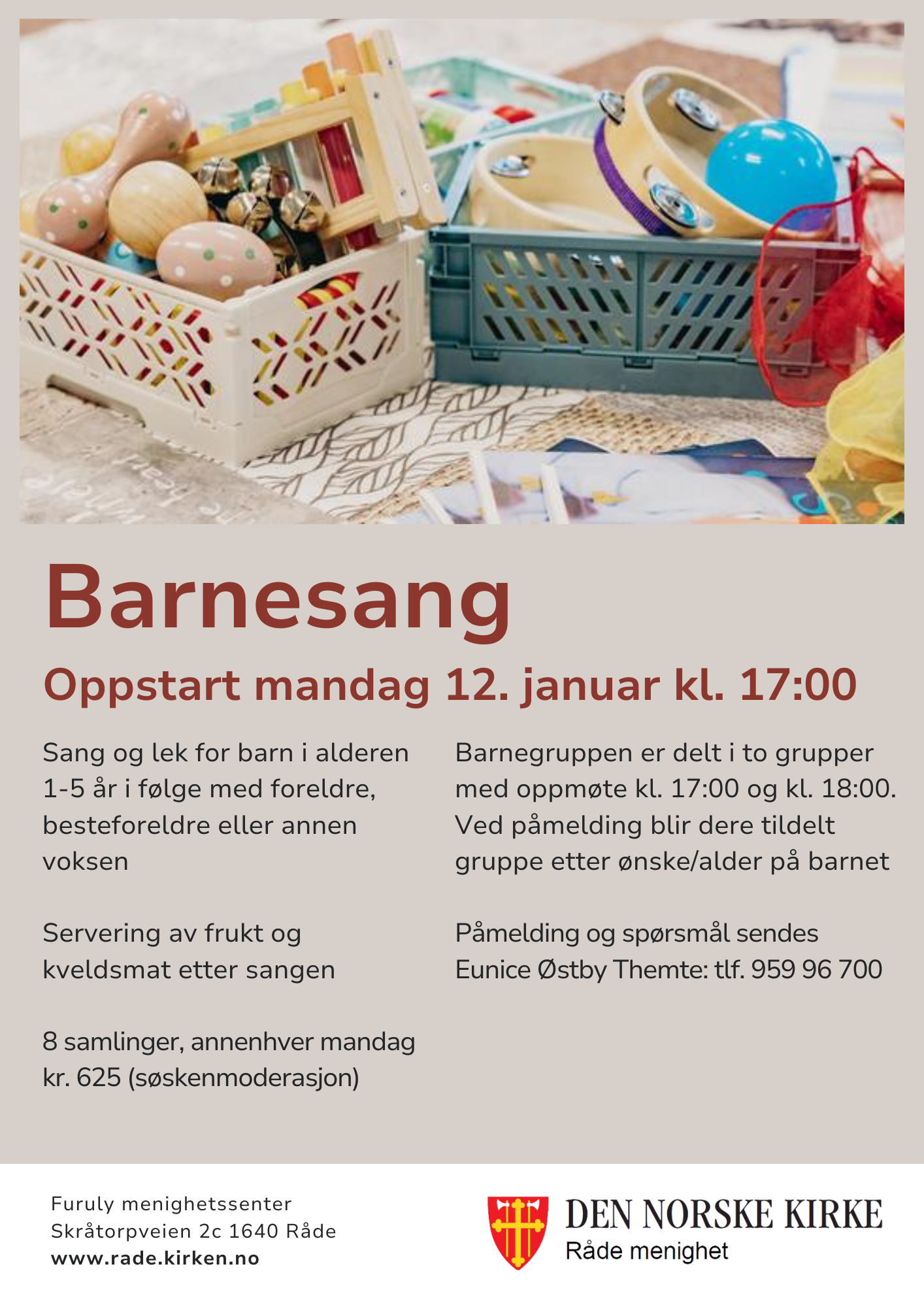 Sang, lek og kveldsmat på Furuly menighetssenter annenhver mandag. Et sosialt møtepunkt for småbarnsfamlier.
