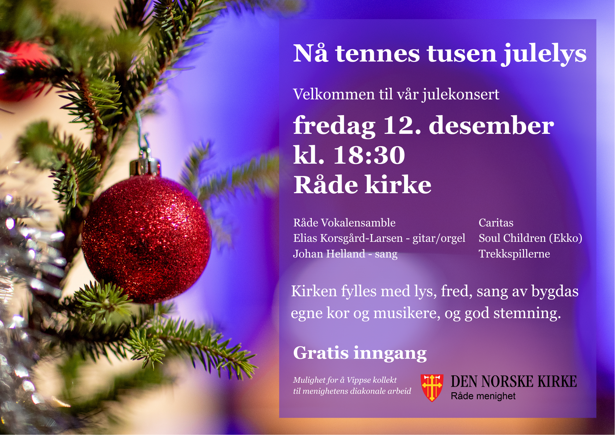 Velkommen til menighetens tradisjonelle julekonsert fredag 12. desember kl. 18:30 i Råde kirke