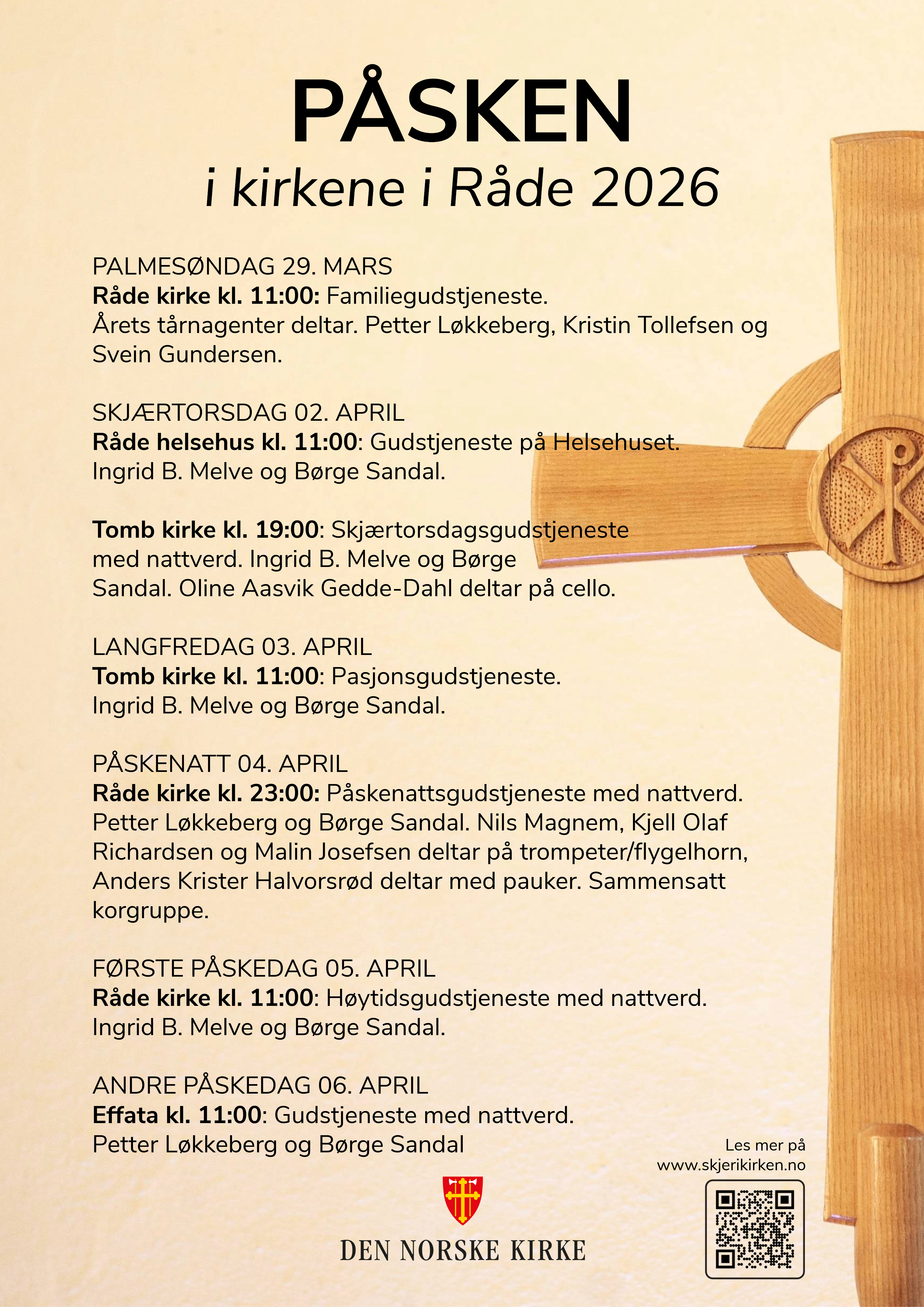 Program for påskefeiringen i Råde menighet: