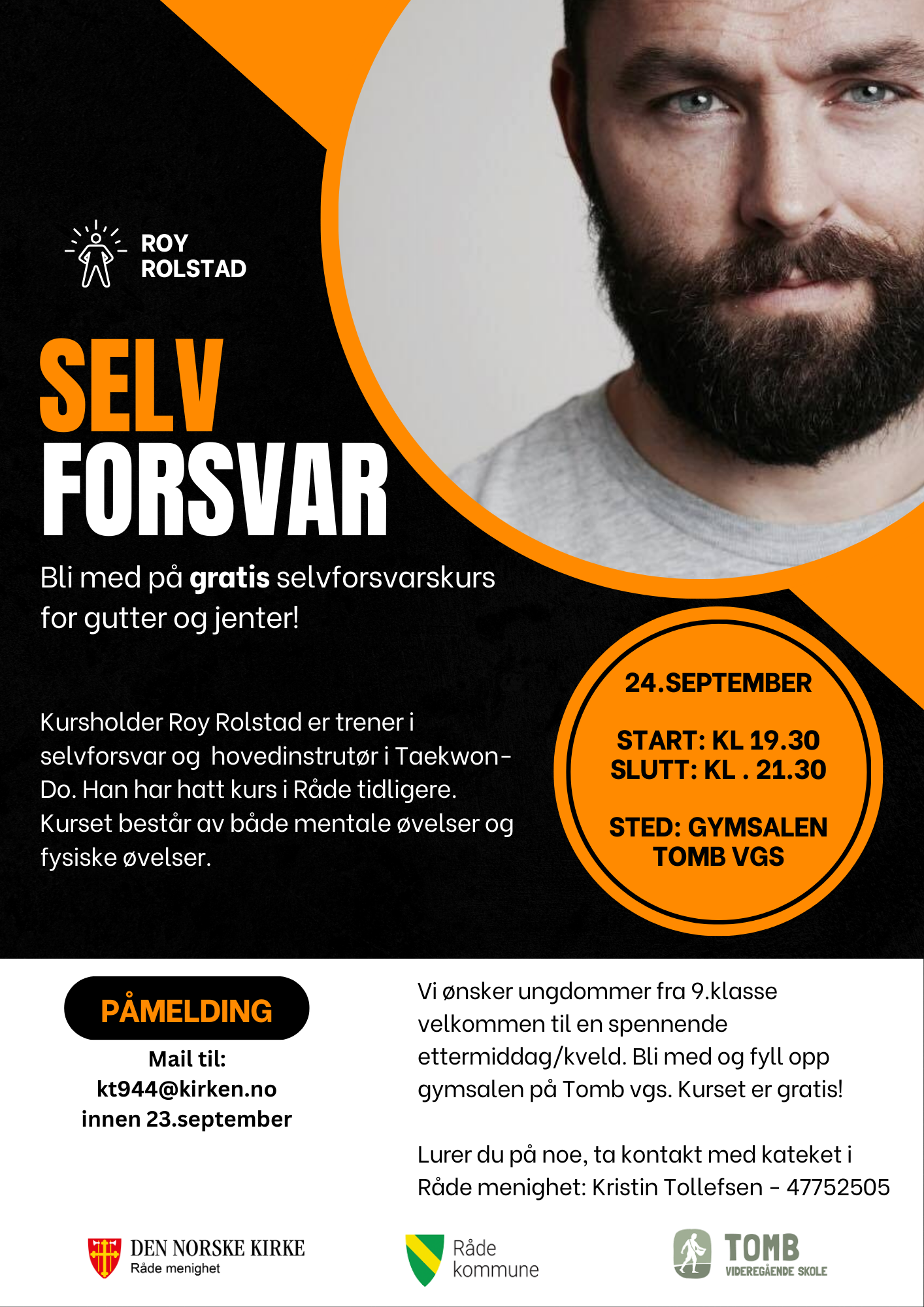 Råde menighet, Råde kommune og Tomb vgs arrangerer gratis selvforsvarskurs for ungdom 24. september 2025.